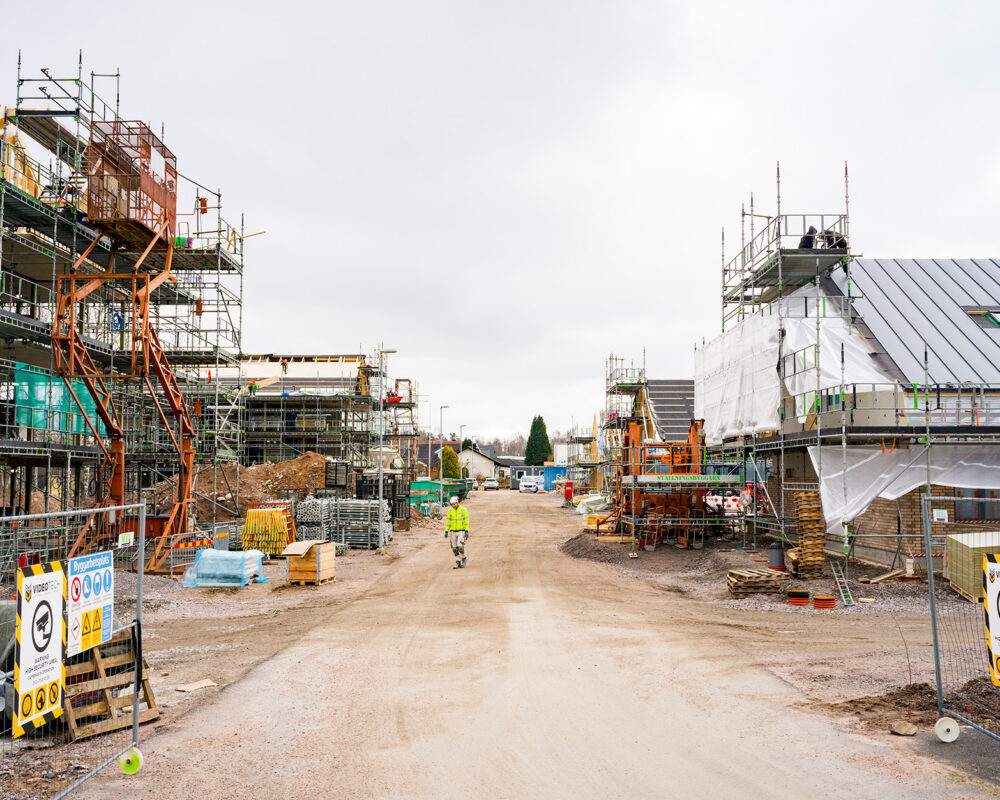 Bygget av det nya bostadsområdet på Avenboksgatan här i Smålandsstenar går i full fart!